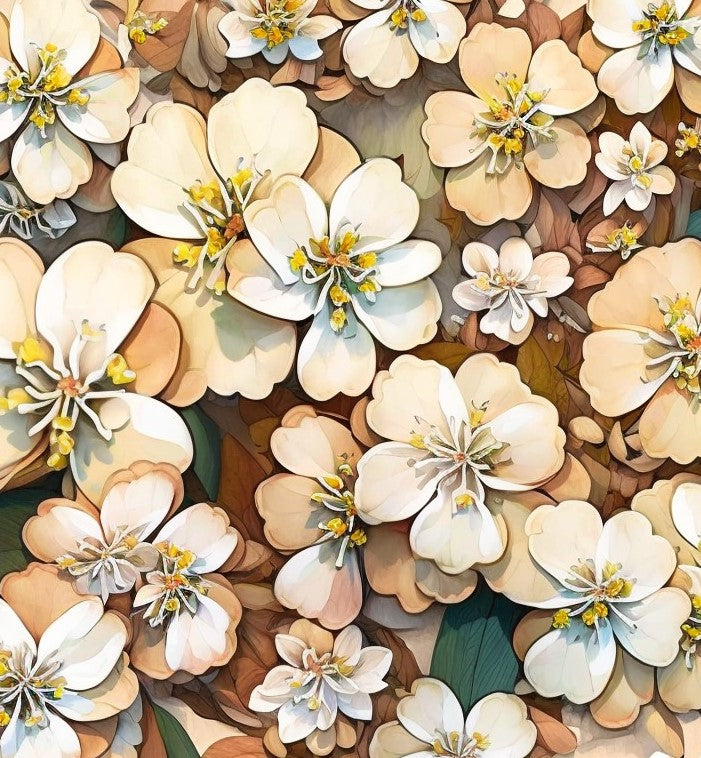 Die weichen creme und braun Töne sorgen gemeinsam mit der leichten Blumenlasche für einen warmen femininen Look.