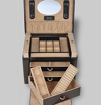 Schmuckkoffer Victoria vario / schwarz (Leder)