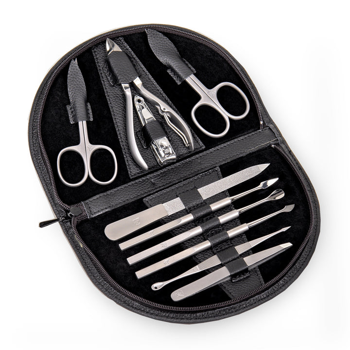 10-teilig Maniküretui Manikürenset / schwarz (Leder)