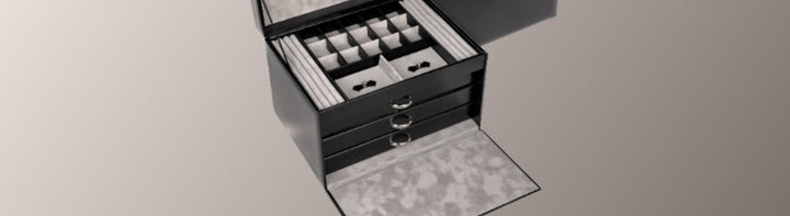 Bei uns haben Sie die Freiheit, Schubfächer nach Ihren spezifischen Bedürfnissen auszuwählen. Ob für opulente Ketten, filigrane Ringe oder extravagante Ohrringe, gestalten Sie Ihren Schmuckkoffer ganz nach Ihrem Geschmack.