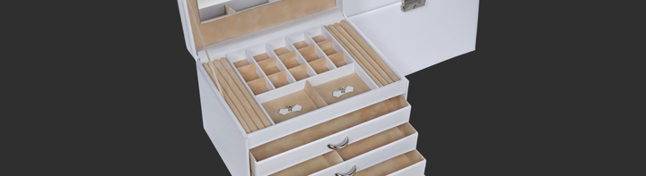 Bei uns haben Sie die Freiheit, Schubfächer nach Ihren spezifischen Bedürfnissen auszuwählen. Ob für opulente Ketten, filigrane Ringe oder extravagante Ohrringe, gestalten Sie Ihren Schmuckkoffer ganz nach Ihrem Geschmack.