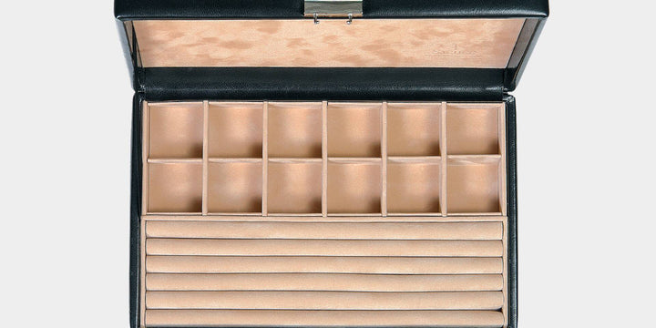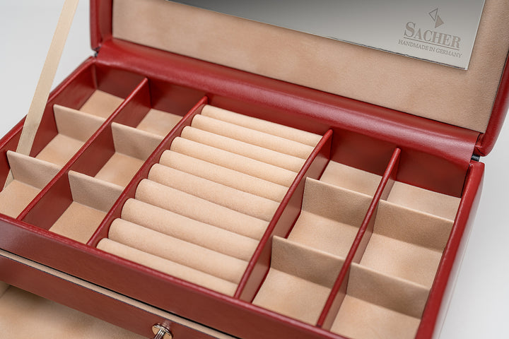SACHER - As the only manufacturer of jewelry boxes, watch boxes and cases in Germany, we stand for outstanding quality, craftsmanship 'Made in Germany' and high customer satisfaction. Our passion lies in creating exclusive jewelry storage solutions that optimally protect, organize and present valuable pieces of jewelry.