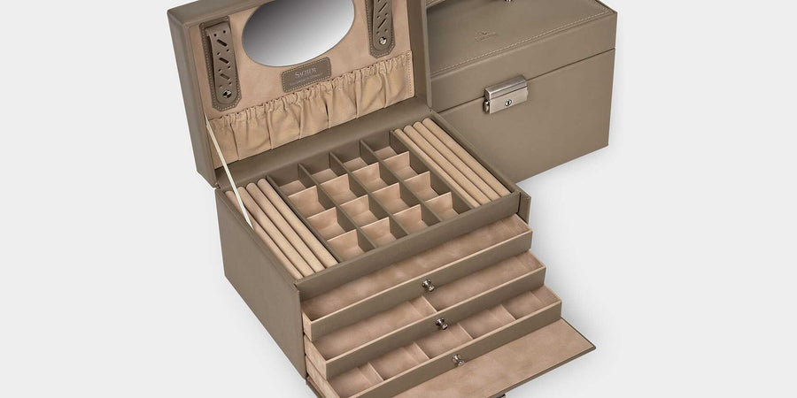 Our jewelry boxes and watch boxes have been handcrafted by experienced master craftsmen for over 175 years. It takes many years of experience for a case maker to acquire all the knowledge and skills needed to produce a high-quality jewelry case.