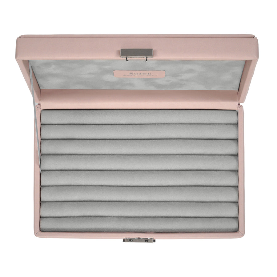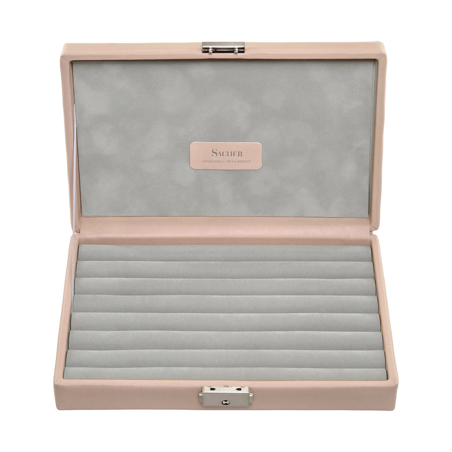 Jedes Produkt dieser Kollektion wird von der Auswahl des Materials bis zur abschließenden Qualitätskontrolle mit viel Liebe zum Detail in unserer Manufaktur im Erzgebirge von Hand gefertigt. Die hohe Qualität, Klarheit und Werterhaltung machen jedes Kästchen und Etui zu einem unverwechselbaren Unikat, das den Test der Zeit bestehen wird. In einer schnelllebigen Welt ist es wichtiger denn je, auf Produkte zu setzen, die auf Dauer angelegt sind. Seit 1846 steht die Manufaktur SACHER für höchste Qualität und Handwerkskunst, die auch noch in vielen Jahren begeistert.
