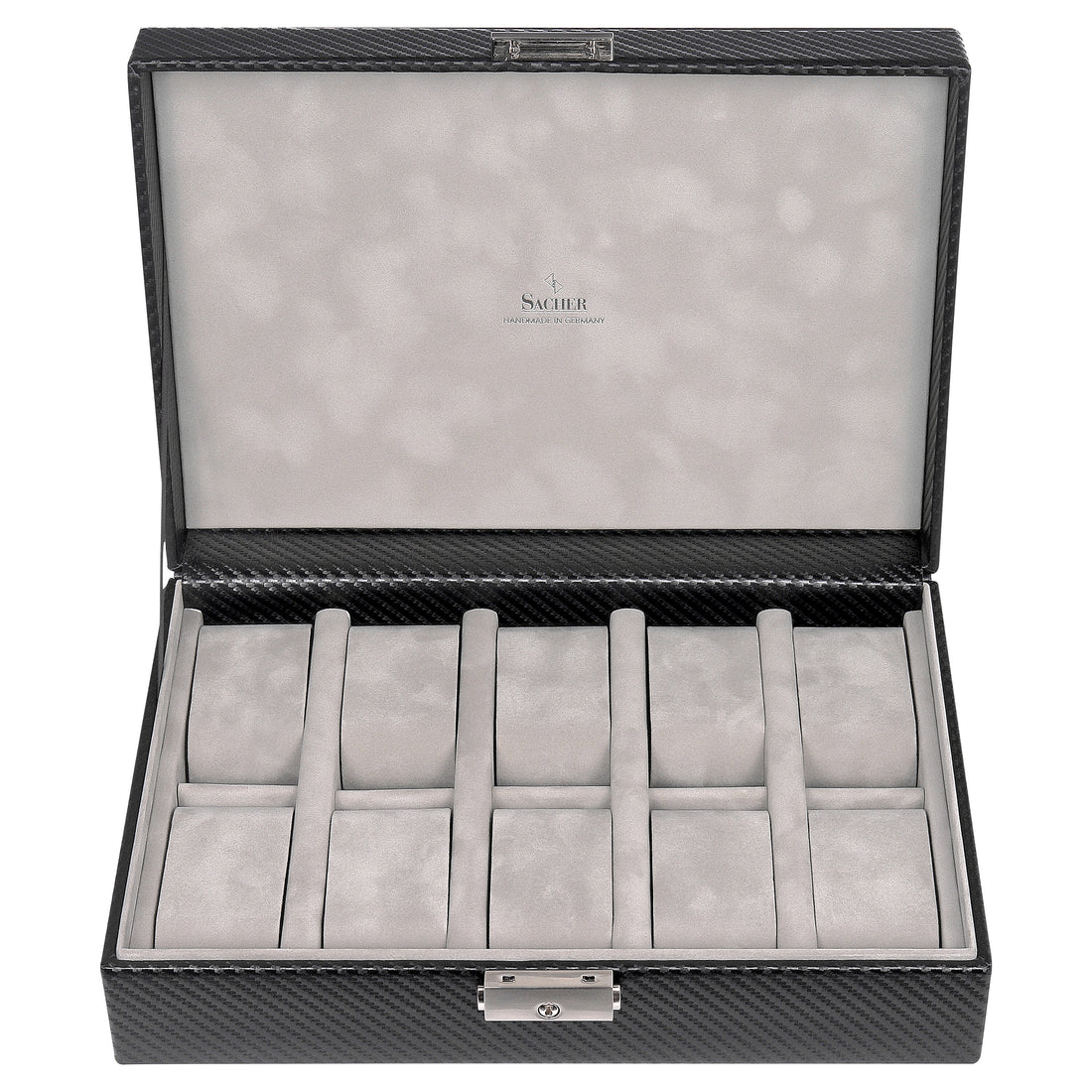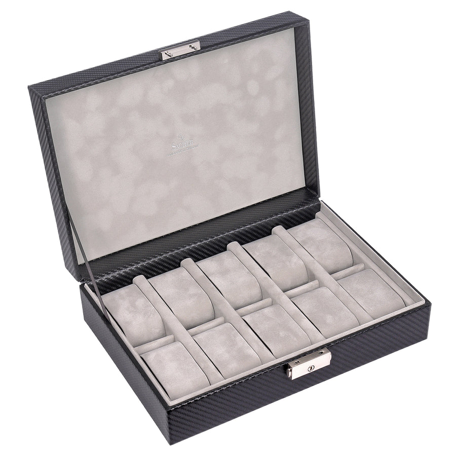 Uhrenetui für 10 Uhren carvon / schwarz (Leder)