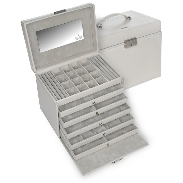 Großer Schmuckkoffer zur übersichtlichen Schmuckaufbewahrung. Endlich Schmuck an einem Ort sicher aufbewahren.