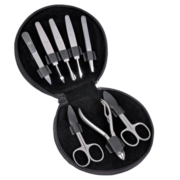 8-teilig Maniküretui Manikürenset / schwarz (Leder)